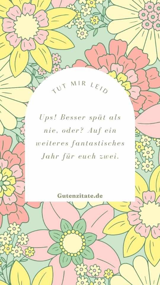- Ich wünsche euch beiden ein Jahr voller Liebe und Freude. Nachträgliche Wünsche zu eurem Hochzeitstag.