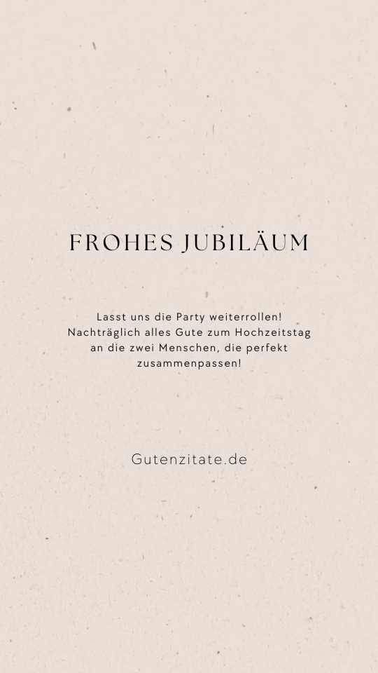- Jeder Tag ist eine Feier, wenn es Liebe wie eure gibt. Hier ist mein leicht verspäteter Jubel. Ich wünsche euch nachträglich alles Gute zum Jubiläum und alles Glück der Welt.